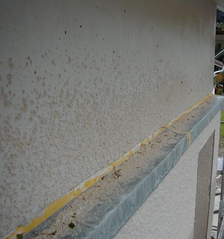 Witterungs-/ Hagelschaden an neu aufgebrachtem Putz eines Neubaus