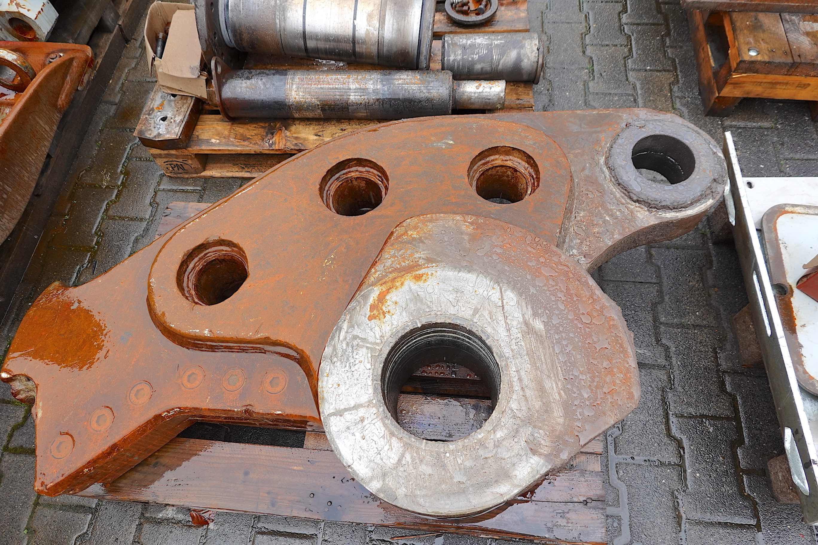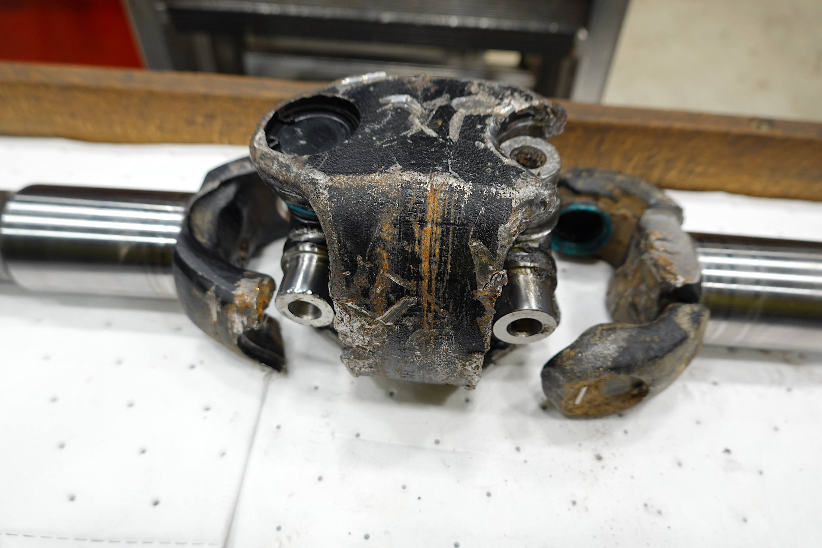 Gebrochenes Kreuzgelenk an Vorderachse eines Mobilbaggers
