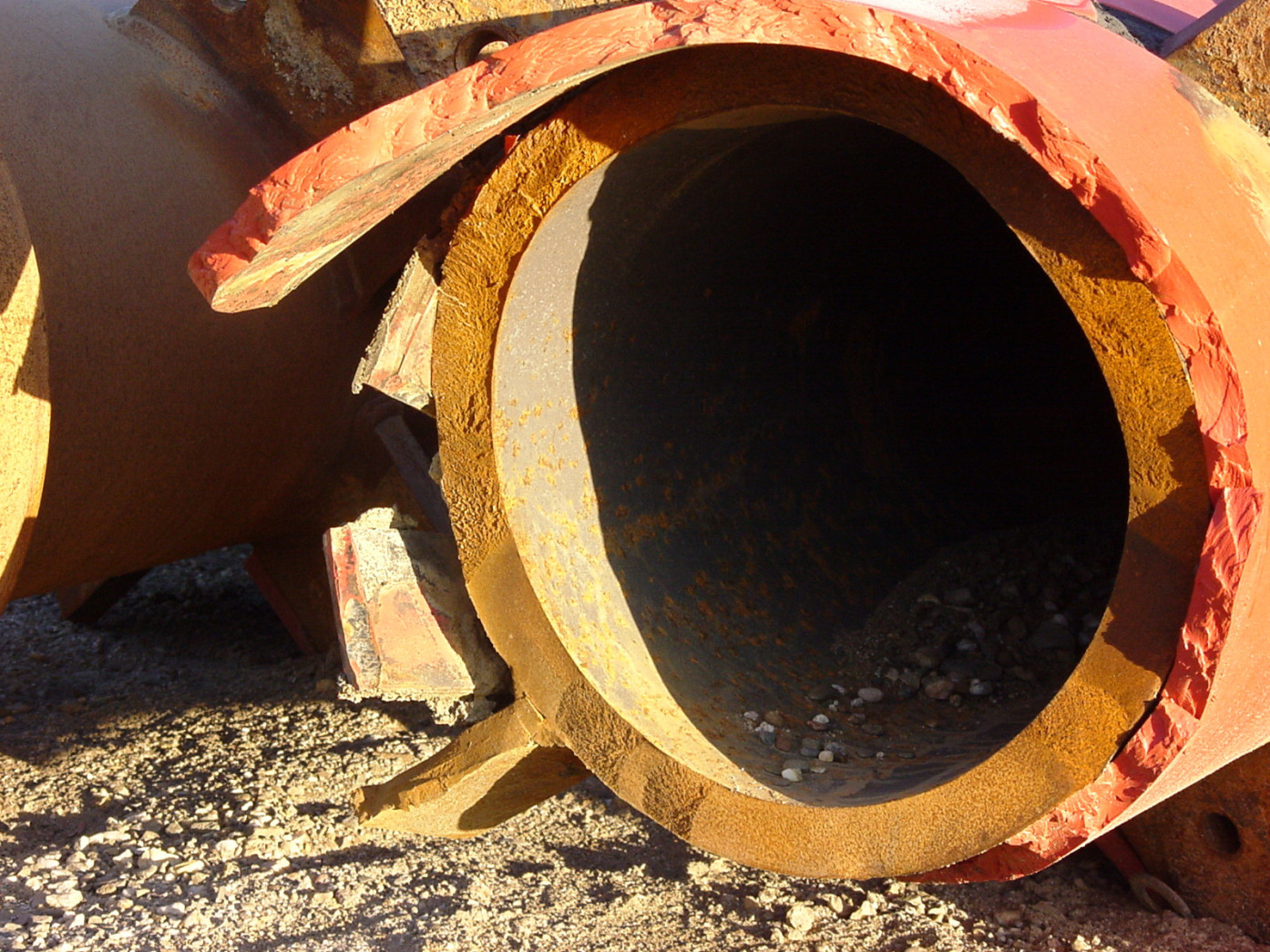 Bruch von Schwertwelle an Schwimmbagger zur Kiesgewinnung